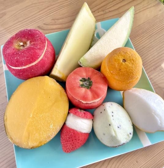 フルーツや野菜を丸ごとくり抜いてジェラートにした”総天然氷菓”9品と、食べやすいカップ8品。